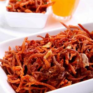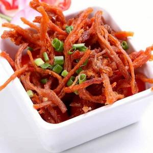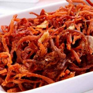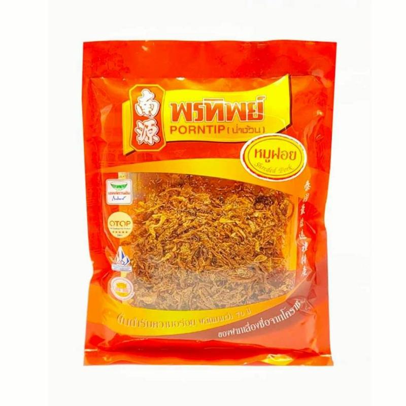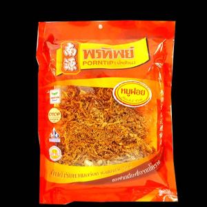 " หมูฝอย" ปรุงรสด้วยสูตรเฉพาะสูตร พรทิพย์ น่ำง้วน แล้วนำมาทอดจนได้สีและกลิ่นของน้ำตาลไหม้ กรอบ