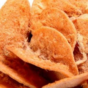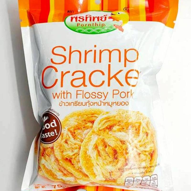 ข้าวเกรียบกุ้งหน้าหมูหยอง ข้าวเกรียบกุ้งทอดกรอบ ปรุงด้วยน้ำปรุงรส โรยหมูหยอง อบกรอบ หอม อร่อย