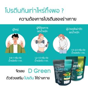 1️⃣ ตักผงโปรตีน D GREEN 1 ช้อน (40 กรัม)