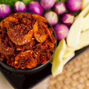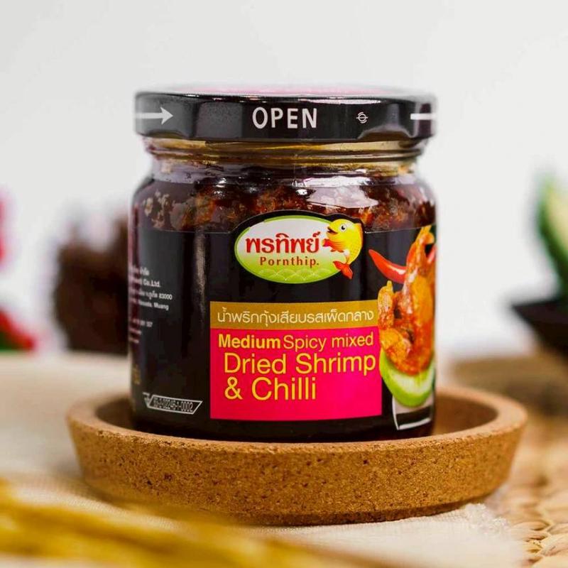 น้ำพริกกุ้งเสียบรสเผ็ดปานกลาง พร้อมทาน รสกลมกล่อม สามารถทานกับข้าวสวยร้อน ๆ ได้เลย หรือนำไปผัดคลุกเคล้ากับข้าว ปรุงรสเล็กน้อย