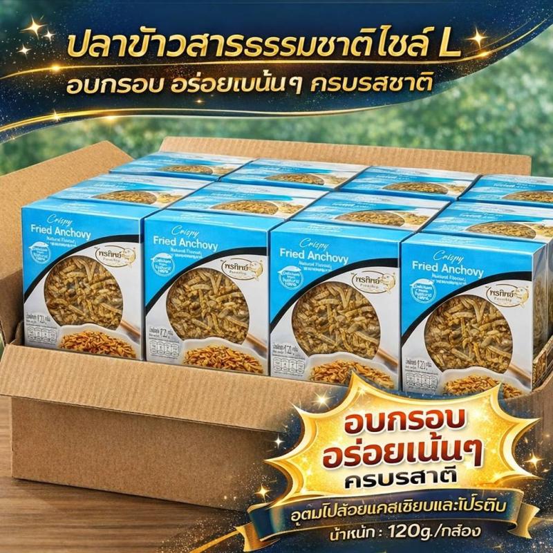 ปลาข้าวสารธรรมชาติไซต์ L อบกรอบ อร่อยเน้นๆ ครบรสชาติ อุดมไปด้วยแคลเซียมและโปรตีน